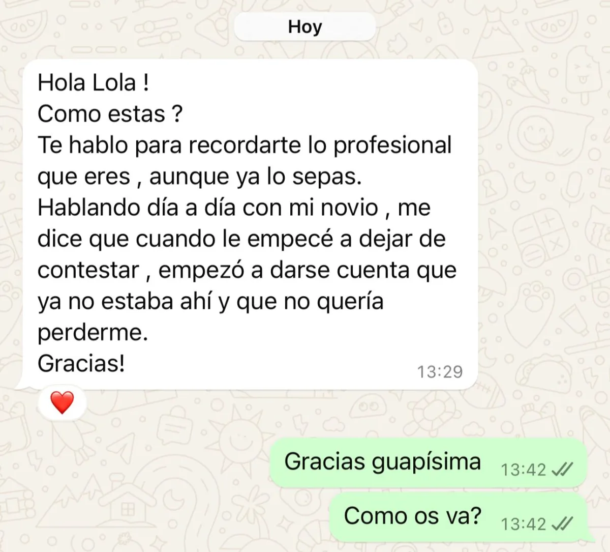 Licenciada en Administración de Empresas y formada como Coach Personal y Sentimental, Mentora y Terapeuta, he ayudado a cientos de personas a recuperar su poder personal y reconstruir sus relaciones desde una versión más sana de sí mismas.